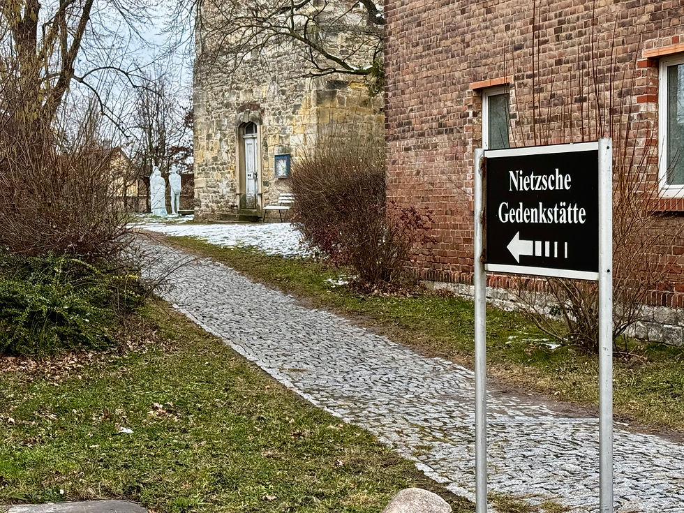 You'll soon see Nietzsche's gravesite and a sculpture showing his mother and sister standing over the master's grave ...